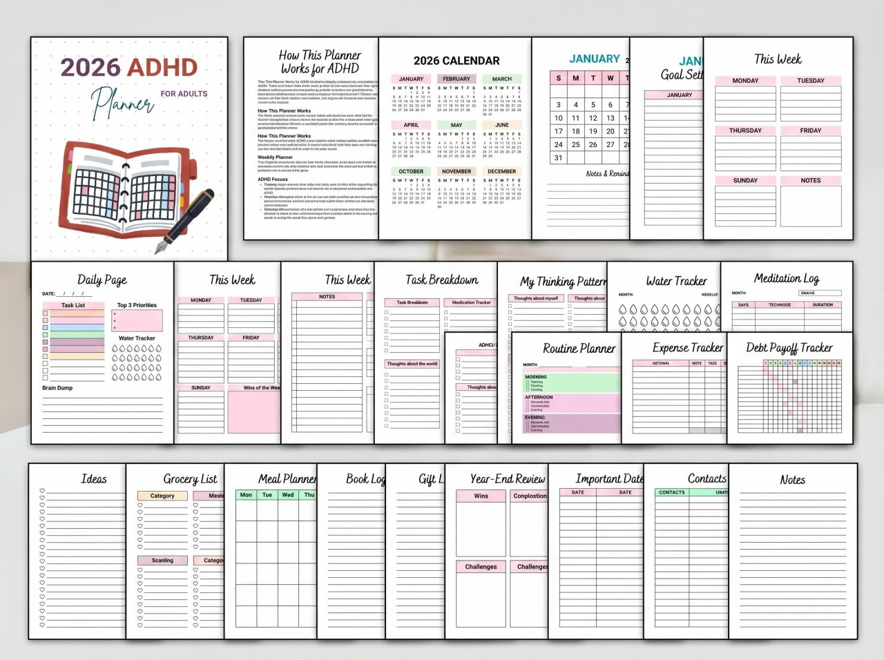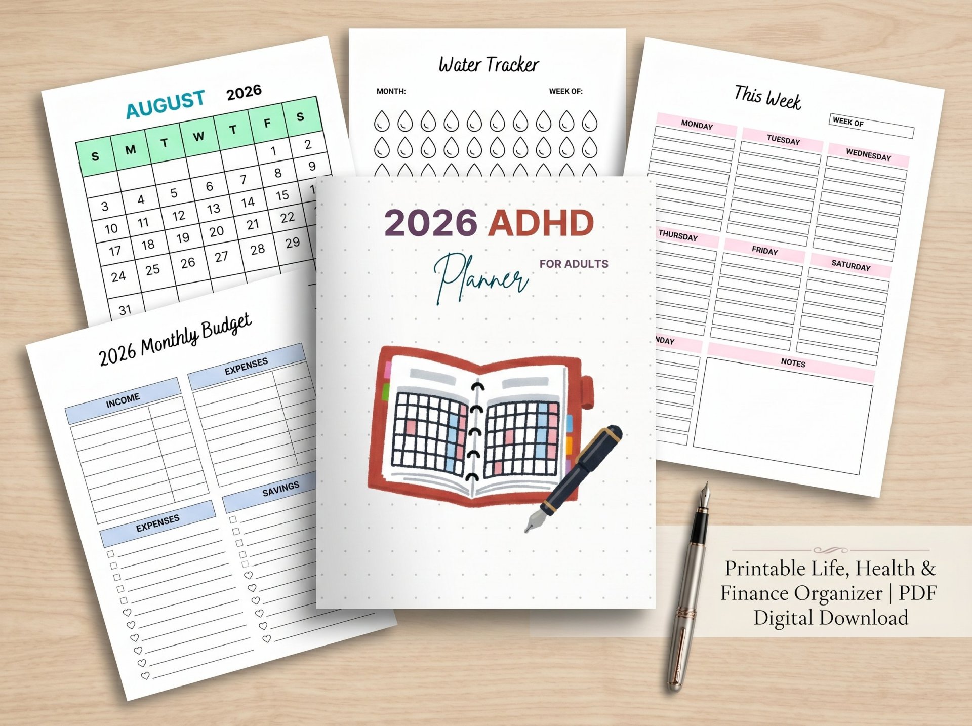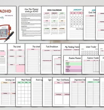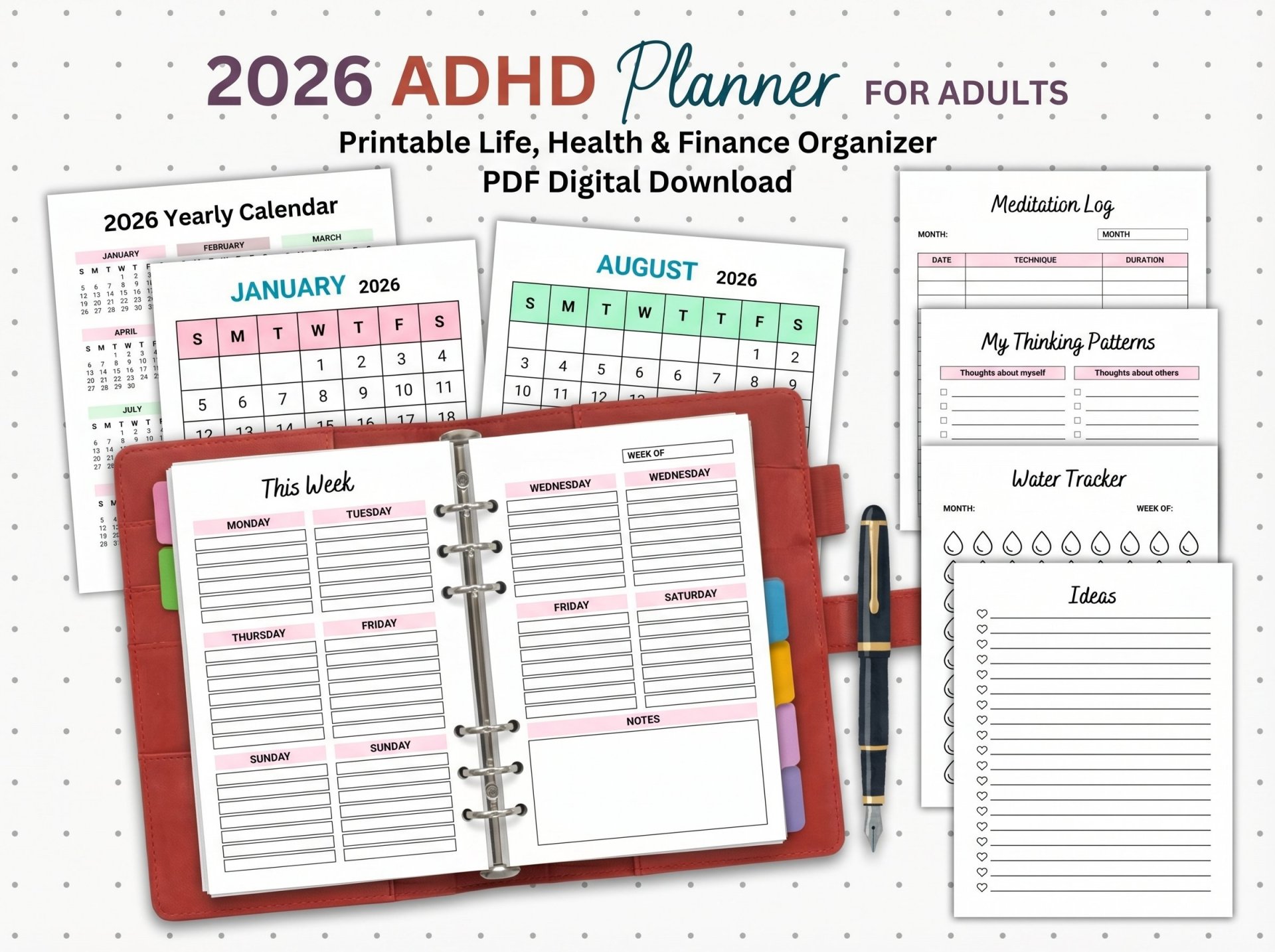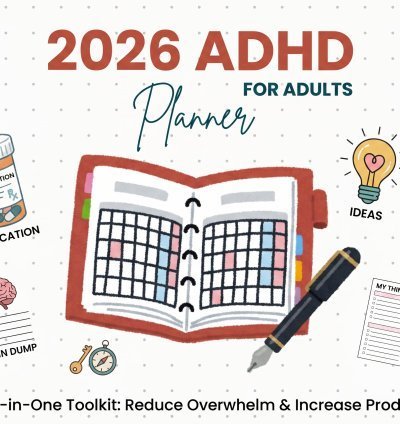Designed specifically for adults navigating life with ADHD, this 2026 planner is your all-in-one toolkit for reducing overwhelm and increasing daily productivity. Whether you struggle with executive dysfunction, remembering appointments, or just need a centralized place to empty your brain, this printable planner is structured to help you succeed.