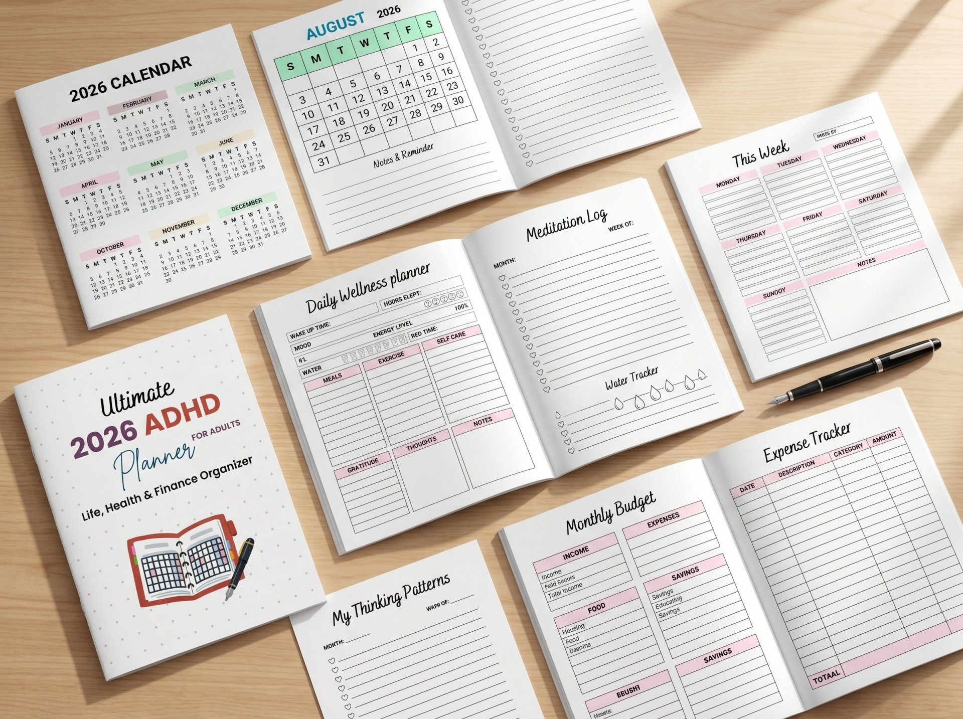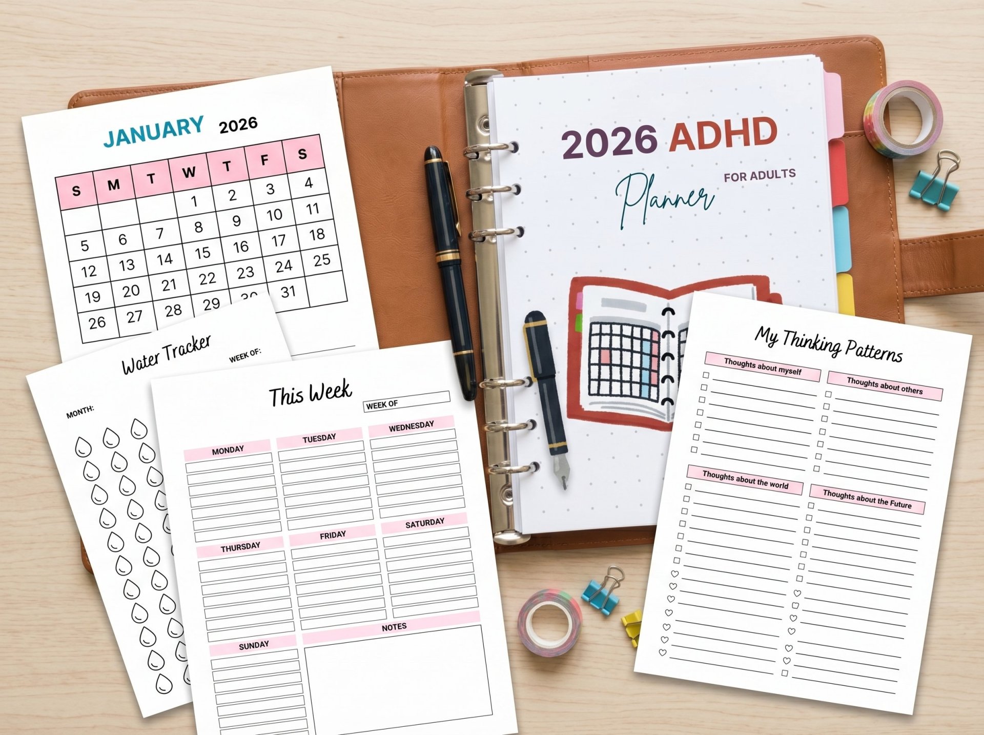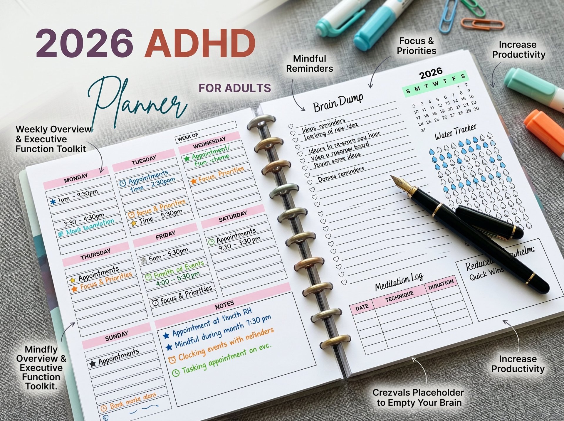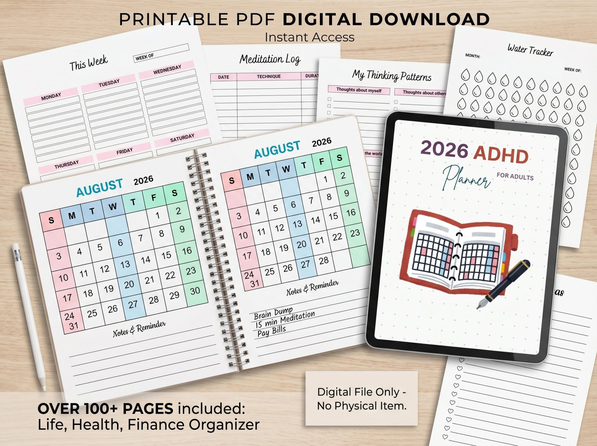Designed specifically for adults navigating life with ADHD, this 2026 planner is your all-in-one toolkit for reducing overwhelm and increasing daily productivity. Whether you struggle with executive dysfunction, remembering appointments, or just need a centralized place to empty your brain, this printable planner is structured to help you succeed.
