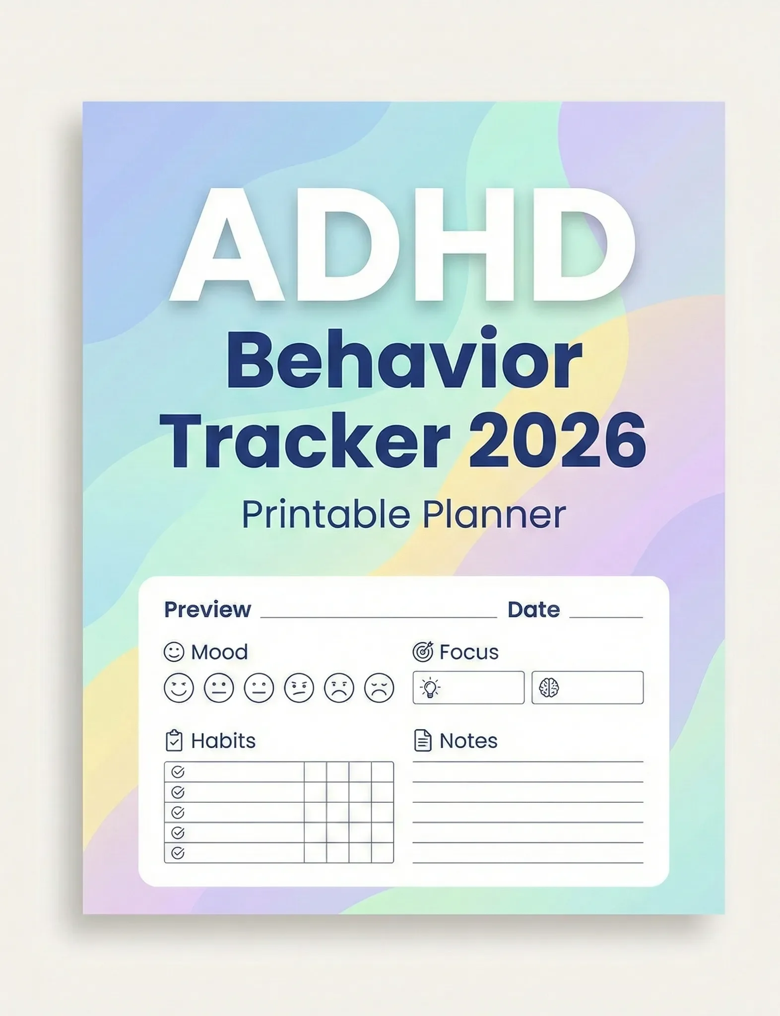 Stay organized and take control of ADHD management with this ADHD Behavior Tracker – 2026 Edition. This professionally designed 122-page printable journal (6 x 9 inches with bleed) helps track symptoms, medication, daily habits, mood, and wellness for an entire year.