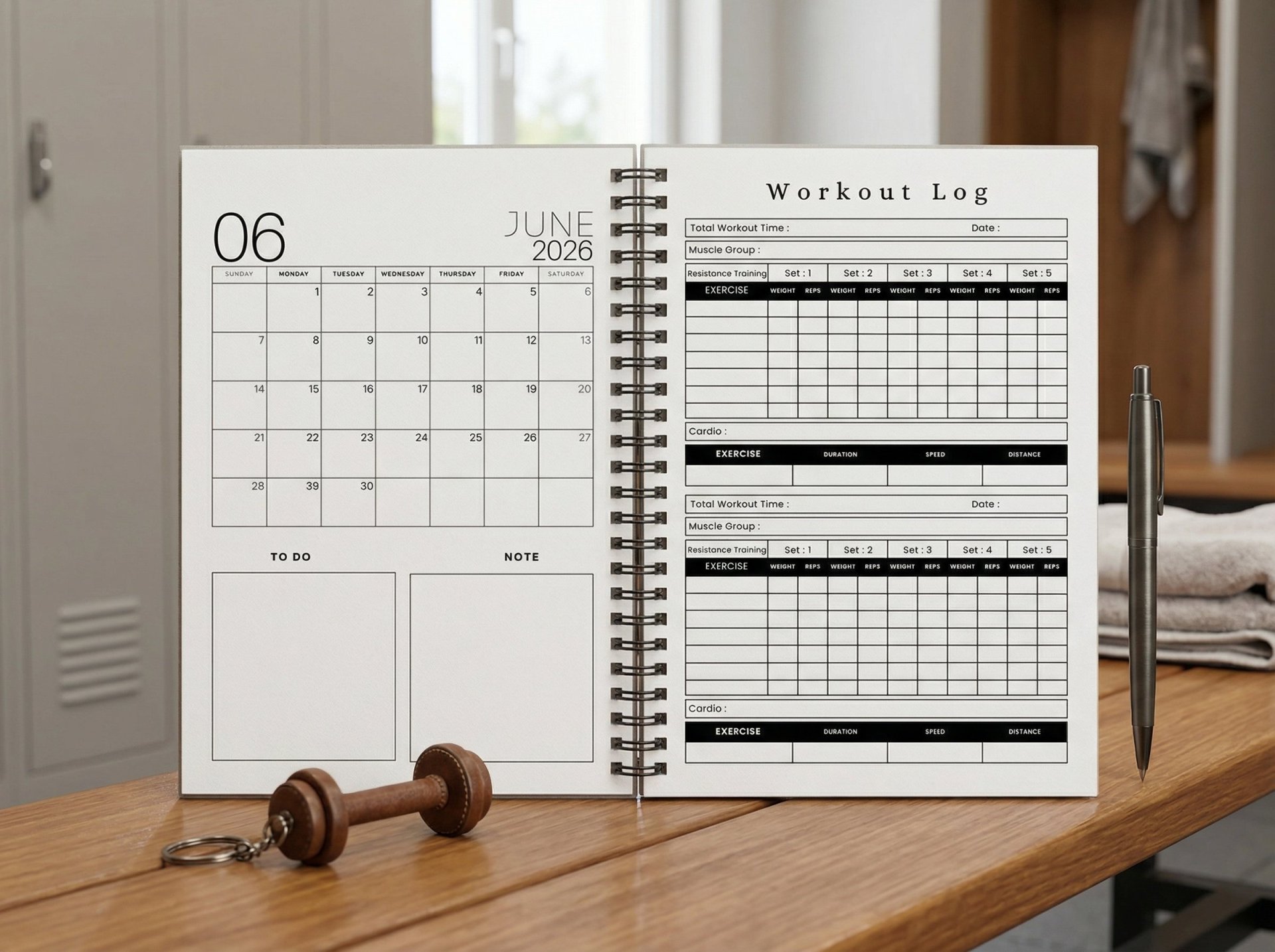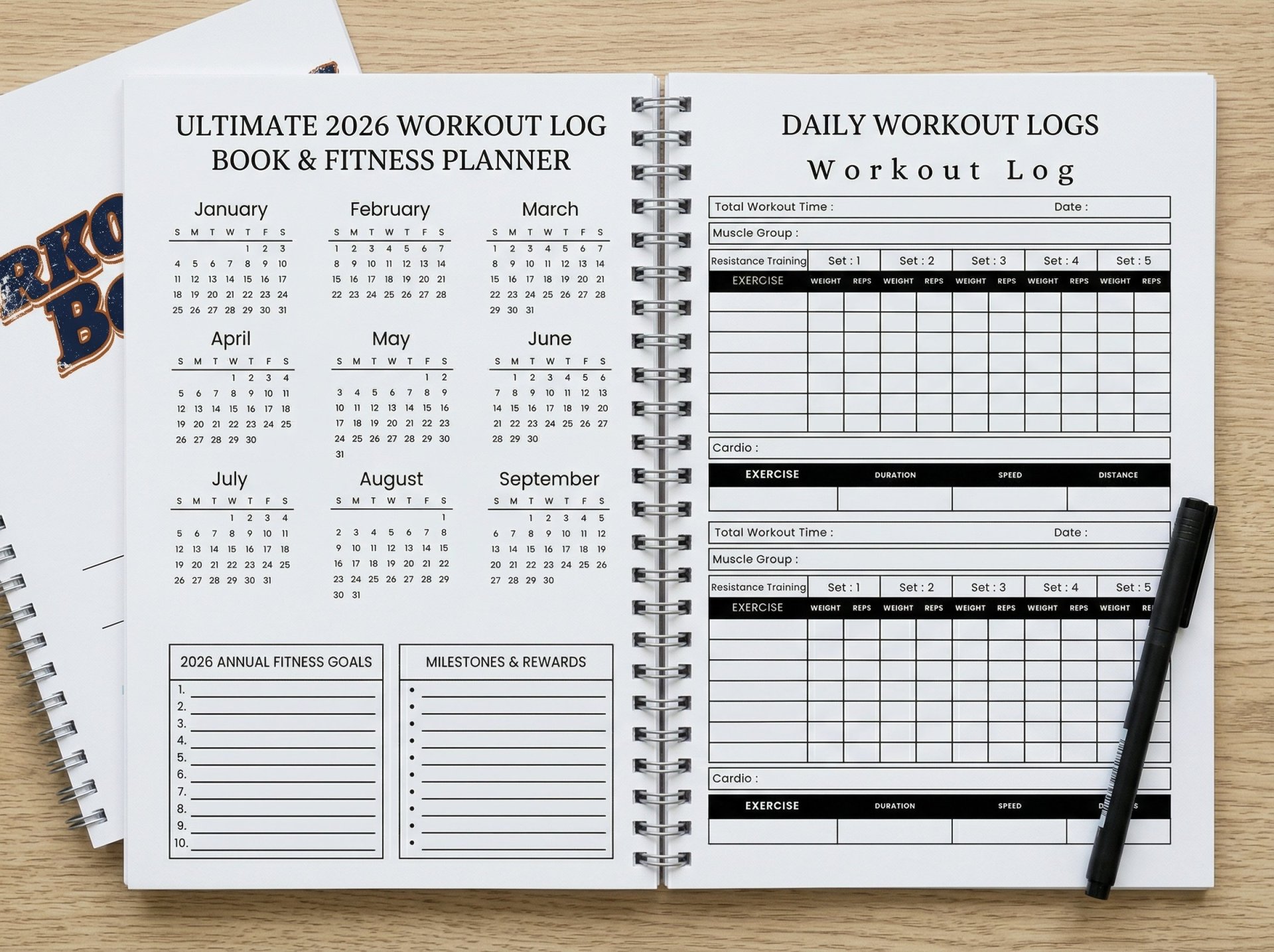 Extra Logging Space: Additional lined "Workout Log" pages at the back for custom notes, personal records, or extra routines.